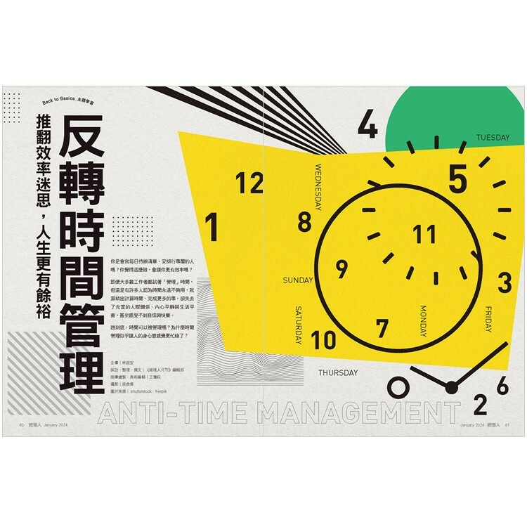 即便大多數工作者都試著「管理」時間,但還是有許多人認為時間永遠不夠用,就算精密計算時間、完成更多的事,卻失去了充實的人際關係、內心平靜與生活平衡,甚至感受不到自信與快樂。
