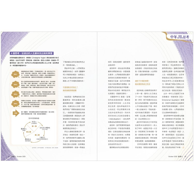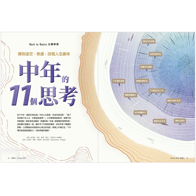 到了中年,面對已經走過一半的人生風景,你是否曾自問:「接下來的幾十年人生,也要這樣過嗎?」工作難再燃起熱情、身體不如年輕健壯、親友衰老或離世,周遭的每一件事,都提醒你時間有限。這些變化堆疊在一起,讓中年工作者感到痛苦,卻也孕育了轉變的契機。人們開始向內探索內心真正的渴望,即便上半場已定,下半場仍能透過認識自己,找到幸福的關鍵。