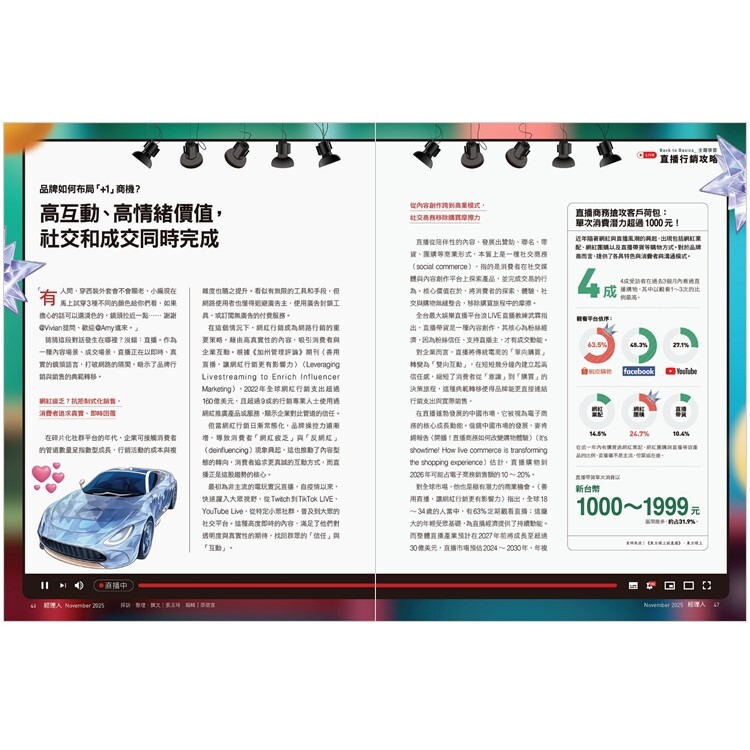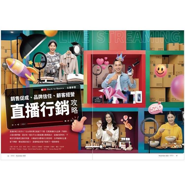 直播的威力有多大?在台灣有單日能創下千萬、百萬業績的大品牌,汽機車、冰箱也賣得動,甚至有一檔全平台活動能賣出數萬瓶水。直播的即時性、不確定性與重視互動的特質,大幅縮短消費者的決策旅程,也考驗事前企畫、當下應變、事後調度的能力,直播無疑是電子商務下一個修煉場。
